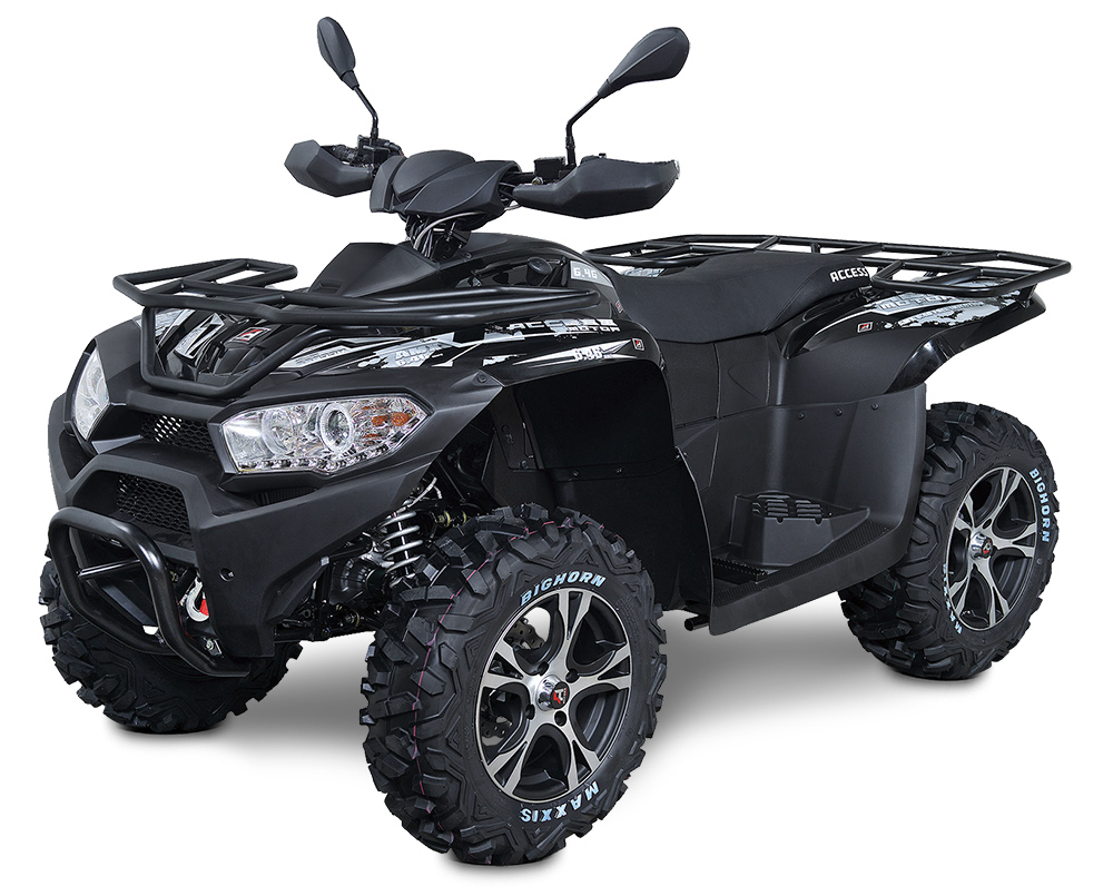 Nová vlajková loď značky Access přichází s moderní technikou, jedním z nejsilnějších motorů ve třídě, atraktivním designem, vyspělými technologiemi, vysokou praktičností a spolehlivostí. Prodloužený podvozek poskytuje dostatek místa řidiči i spolujezdci na samostatné sedačce. Účinný elektrický posilovač řízení usnadňuje práci, jízda je velmi příjemná a pohodlná. Elektricky přepínatelný pohon 2x4/4x4 se dvěma diferenciály zvládne každý terén a poskytuje snadné řízení a klidnou jízdu. Bohatá výbava zahrnuje atraktivní 14" alu kola, moderní LED osvětlení, tažné zařízení, naviják 2500 lbs a robustní nosiče zavazadelNejsilnější motor ve své třídě.Motor modelu MAX 800LT EFI je nejen nejsilnějším motorem značky Access, ale zároveň i jeden z nejsilnějších jednoválců na trhu. Vynikající čtyřtaktní jednoválec 781cc má víc než dostatek síly, vysoký točivý moment a mohutnou tažnou sílu. Vyvažovací hřídel spolehlivě potlačuje nepříjemné vibrace a dává motoru kultivovaný běh. Optimální složení směsi, nízké emise a snadné startování i při nízkých teplotách zajišťuje spolehlivé elektronické vstřikování paliva Bosch.Elektrický posilovač řízení znamená jistotu a pohodlnou a bezpečnou jízdu. Díky posilovači je manévrování v těžkém terénu a při pomalé jízdě snadné a lehké. Posilovač Access však zároveň funguje i jako tlumič nárazů do řídítek a zvyšuje tak bezpečnost jízdy: narazí-li přední kolo na skrytý kámen nebo díru, úder vám nevyrazí řídítka z ruky, protože většinu energie zachytí posilovač.Elektricky přepínatelný pohon 2x4/4x4 je u tohoto modelu doplněn hned dvěma diferenciály - jedním na přední a druhým na zadní nápravě. Toto technické řešení umožňuje hravě zvládnout každý terén a navíc poskytuje velmi snadné řízení a doslova sametovou jízdu na rovině a v zatáčkách. Optimální přenos výkonu zajišťuje spolehlivá automatická dvourychlostní CVT převodovka se zpátečkou, motorovou brzdou a odstředivou spojkou.Příjemně ovladatelný prodloužený podvozekSnadné řízení, vysoká obratnost a úžasná průchodnost terénem - podvozek Accessu Max 800LT patří k nejlepším čtyřkolkovým podvozkům vůbec. Lehký robustní rám s nízko položeným těžištěm, vysoká světlá výška a malý poloměr otáčení dávají čtyřkolce vynikající jízdní vlastnosti. Prodloužený podvozek přináší větší jistotu ve výjezdech a přitom zachovává vynikající ovladatelnost. Všechna kola jsou nezávisle zavěšena ve dvojitých lichoběžníkových ramenech s velkými zdvihy pérování, komfortně.Účinný čtyřkotoučový brzdový systém na všech kolech s tvarovanými "wave" kotouči a pancéřovanými hadičkami zaručuje silný, přesvědčivý a přesně dávkovatelný brzdný účinek. Při sjíždění kopců navíc pomáhá i účinná motorová brzda.Moderní multifunkční LCD displej přehledně poskytuje všechny potřebné informace. K dispozici je digitální rychloměr, analogový otáčkoměr, hodiny, denní i celkové počítadlo kilometrů, počítadlo motohodin, kontrolka EFI, kontrolka omezovače otáček, kontrolka zařazeného pohonu 4WD, kontrolka uzávěrky diferenciálu, palivoměr a kontrolky blikačů.Moderní LED osvětleníVelkoplošné přední světlomety dokáží proměnit noc v den. S duálními projektorovými čočkami a LED světly pro denní svícení jsou tato moderní světla zároveň účinná, praktická a atraktivní. Blikače a zadní / brzdová světla s pokročilou LED technologií mají minimální spotřebu elektrického proudu a zároveň vysokou svítivost zvyšující vaší viditelnost a bezpečnost.