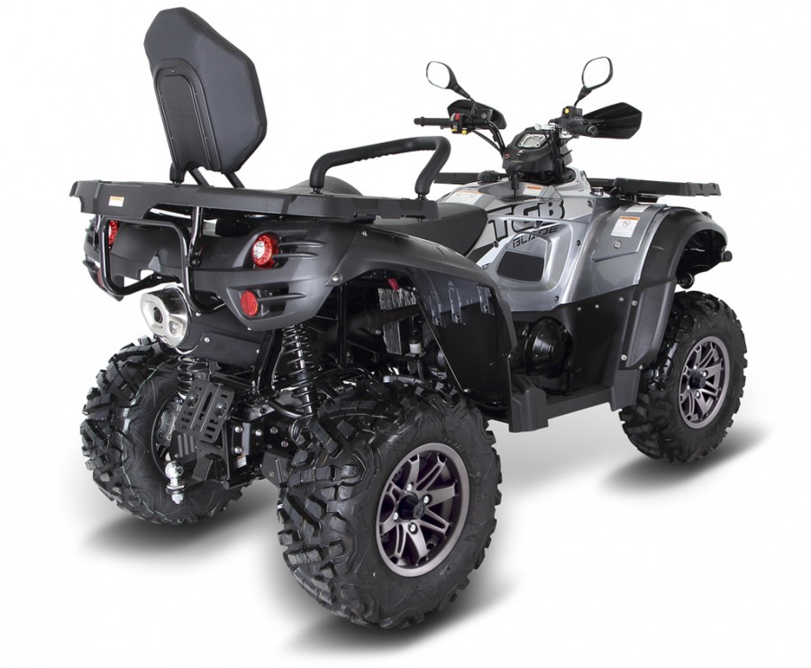 TGB Blade 550 si získal pověst výkonné, odolné, spolehlivé a pracovité užitkově-rekreační čtyřkolky střední třídy, která snese i nešetrné zacházení. Nyní však přichází nový Blade 600 LT - ještě výkonnější, ovladatelnější a stabilnější, vybavený pokročilými technologiemi, s vysokou úrovní výbavy. Největším tahákem je bezpochyby zcela nový výkonný motor 600 ccm s vysokou tažnou silou a působivým zrychlením. Výborně vybavená čtyřkolka vyniká skvělým poměrem ceny, kvality a užitné hodnoty, mimořádnou obratností a snadným a příjemným řízením. Moderní nezávislé zavěšení všech kol IRS, velká světlá výška a široký rozchod dávají čtyřkolce vysokou stabilitu a špičkovou prostupnost terénem; prodloužený podvozek zajišťuje výbornou stoupavost a stabilitu při zachování vysoké obratnosti a hravé ovladatelnosti krátkých modelů.Více výkonu, více práce, více zábavy. Největším přínosem nového modelu je bezpochyby zcela nový kapalinou chlazený motor 600 ccm, do kterého inženýři firmy TGB vložili množství moderních technologií včetně nové čtyřventilové hlavy, kombinovaného chlazení kapalinou a olejem se dvěma samostatnými chladiči nebo elektronického vstřikování paliva Siemens, které zaručuje vysoký výkon, tažnou sílu a točivý moment ve všech otáčkách, spolehlivé startování v létě i v zimě, snížené emise a nízkou spotřebu paliva.Moderní nosiče vyrobené z kvalitního plastu mají vysokou nosnost, výborně odolávají poškrábání a na rozdíl od ocelových nosičů nerezavějí a i po létech náročného provozu vypadají stále dobře.Změněná geometrie podvozku, nové zavěšení předních kol, přepracovaná geometrie řízení a nové nastavení tlumičů dávají čtyřkolce přesné řízení, hravou ovladatelnost a výrazně lepší stabilitu v těžkém terénu i při sportovní jízdě. Moderní nezávislé zavěšení všech kol IRS se širokým rozchodem a velkou světlou výškou umožňuje vynikající terénní prostupnost, v těžkém terénu navíc oceníte i elektricky připojitelný pohon předních kol 2x4/4x4 s možností elektricky uzamknout rychle pracující uzávěrku předního diferenciálu.