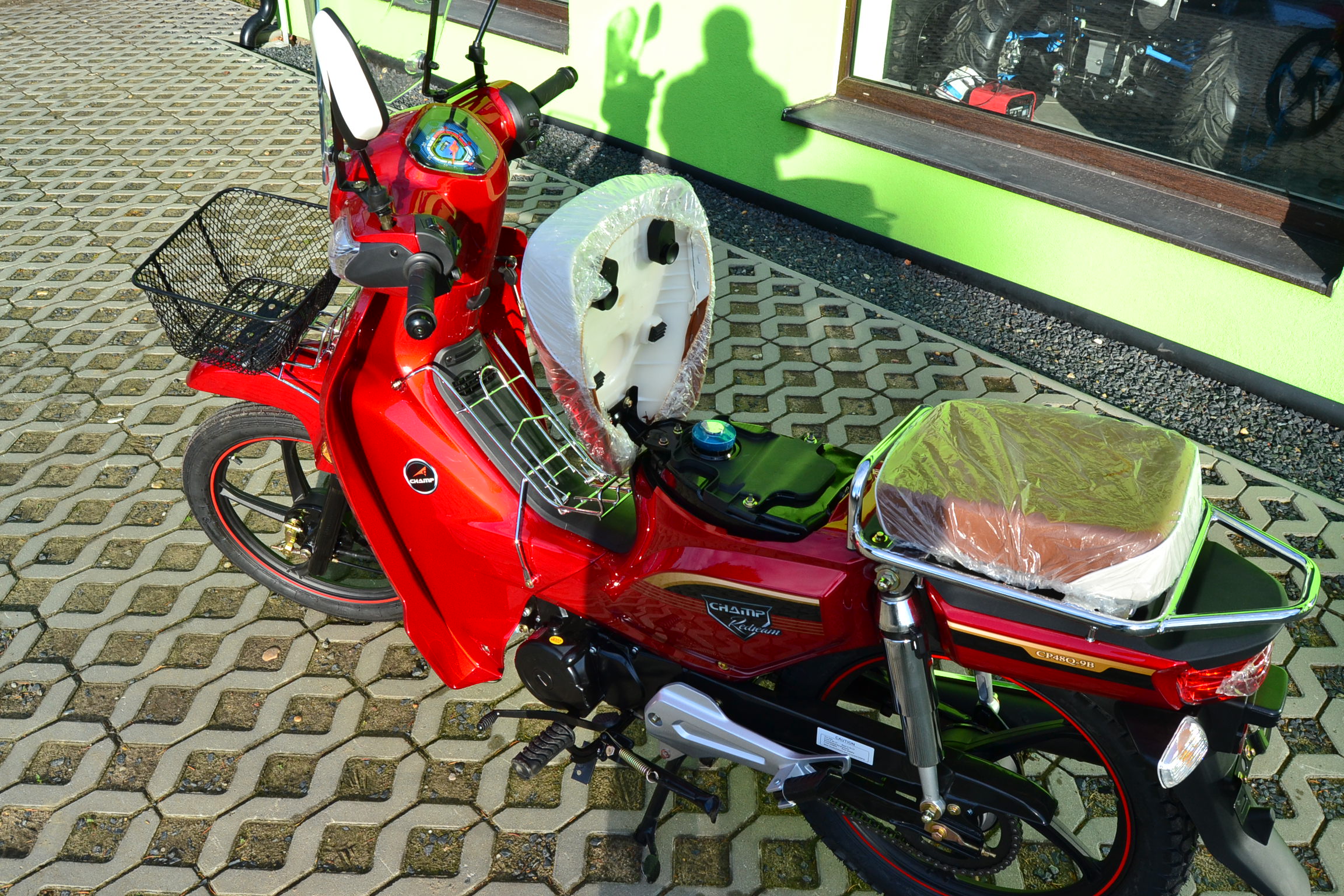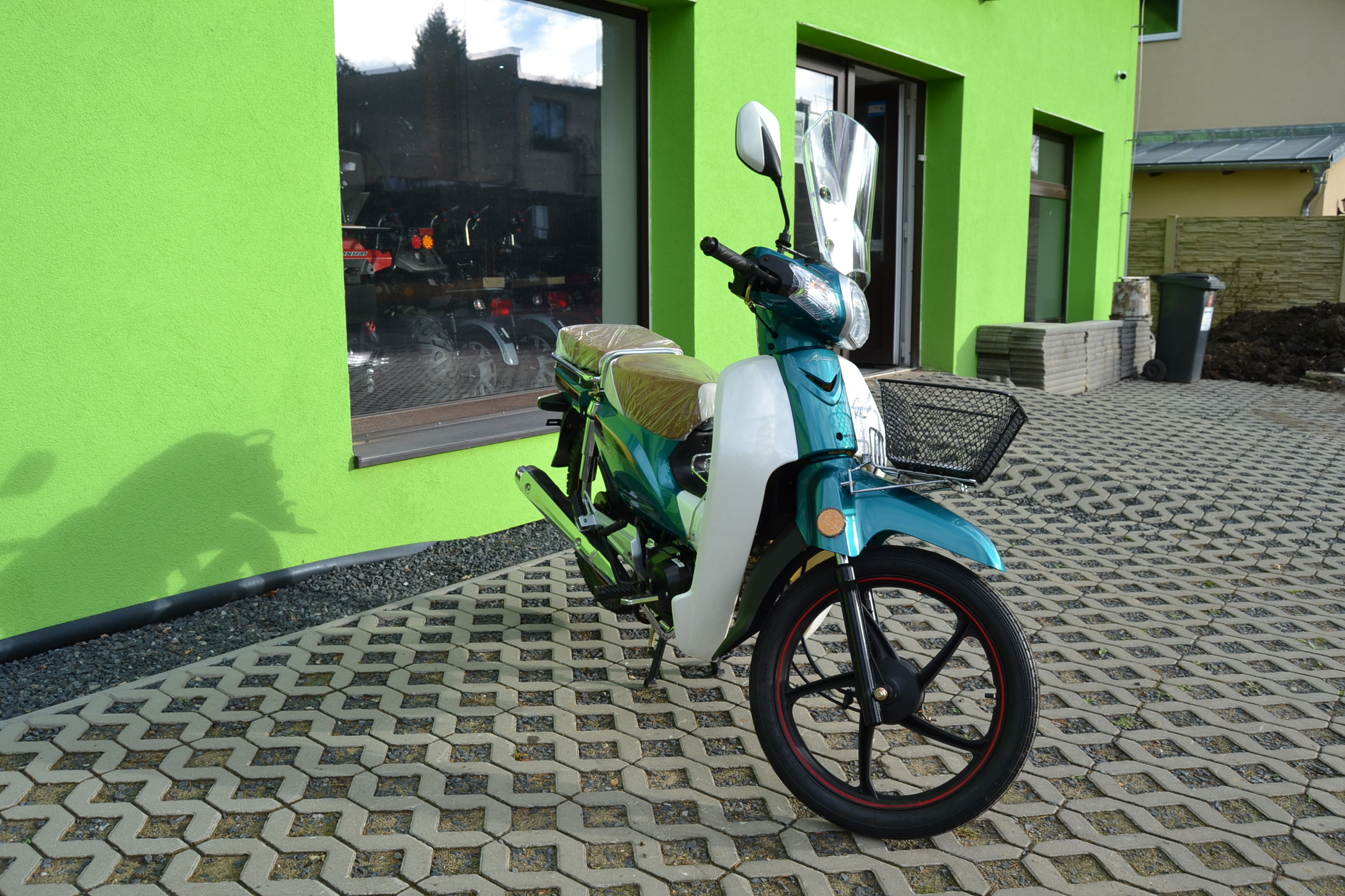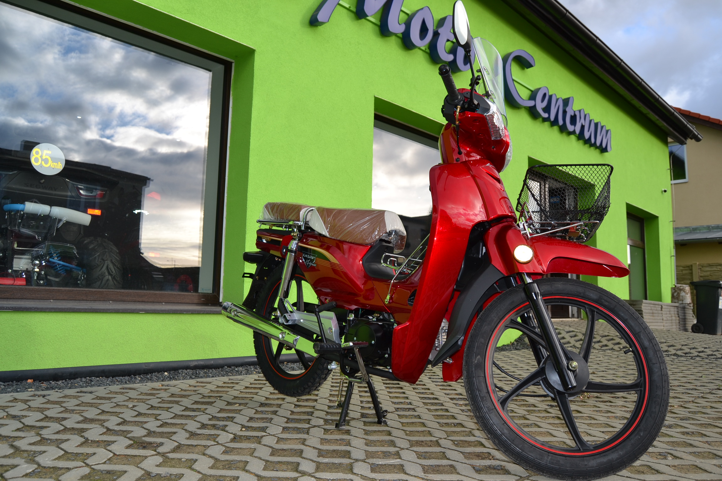 Novinka na kterou jste dlouho čekali...to je Champion Mopedo 50 EFI,který je možno řídit s papíry na malý motocykl od 15.let věku sk.AM nebo na auto sk.B . Dosluhující Babety přestávají plnit svojí funkci a právě nejen pro Vás jsme připravili tento nový model mopedu plnící nejnovětší emisní normu Euro 5.Champion Mopedo 50ccm je vybaven čtyřtaktním jednoválcovým vzduchem chlazeným motorem vycházející z koncepce Honda Monkey se čtyřstupňovou poloautomatickou převodovkou (řadíte jednoduše levou nohou bez nutnosti vymačkávání páčky spojky).Maximální rychlost dle TP je 45km/hod ,ale reálná je vyšší.Rybáři a chataři jistě ocení velká 17 ti palcová kola ,s kterými pak nebudou mít problém při  jízdy i po méně kvalitních komunikacích či lesních cestách.Velmi sympatická je také spotřeba tohoto mopedu ,která se pohybuje dle stylu jízdy kolem 2litrů na 100km.Pro nákupy do samoobsluhy využijete také určitě přední nosič s košíkem ,kde si odložíte pohodlně nákupní tašku.Při jízdě se spolujezdcem si pak jednoduše před jízdou přenastavíte tvrdost zadních tlumičů.Cena je platná ,při zakoupení v přepravní krabici.Montáž stroje zabere cca 3 hodiny.V případě ,že si budete přát moped složený připravený ihned k jízdě příplatek 2000,-kč