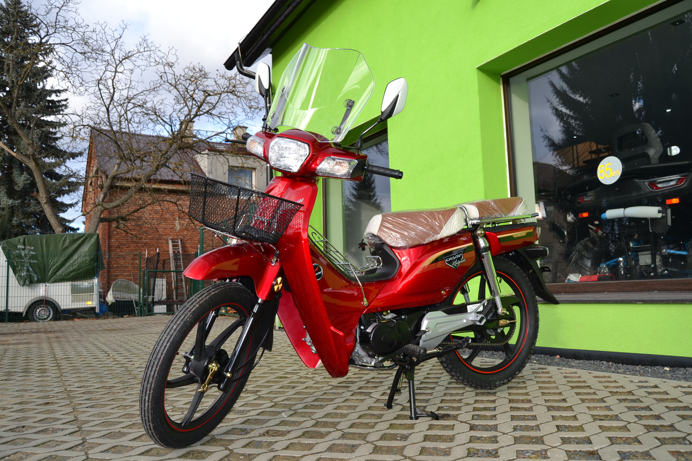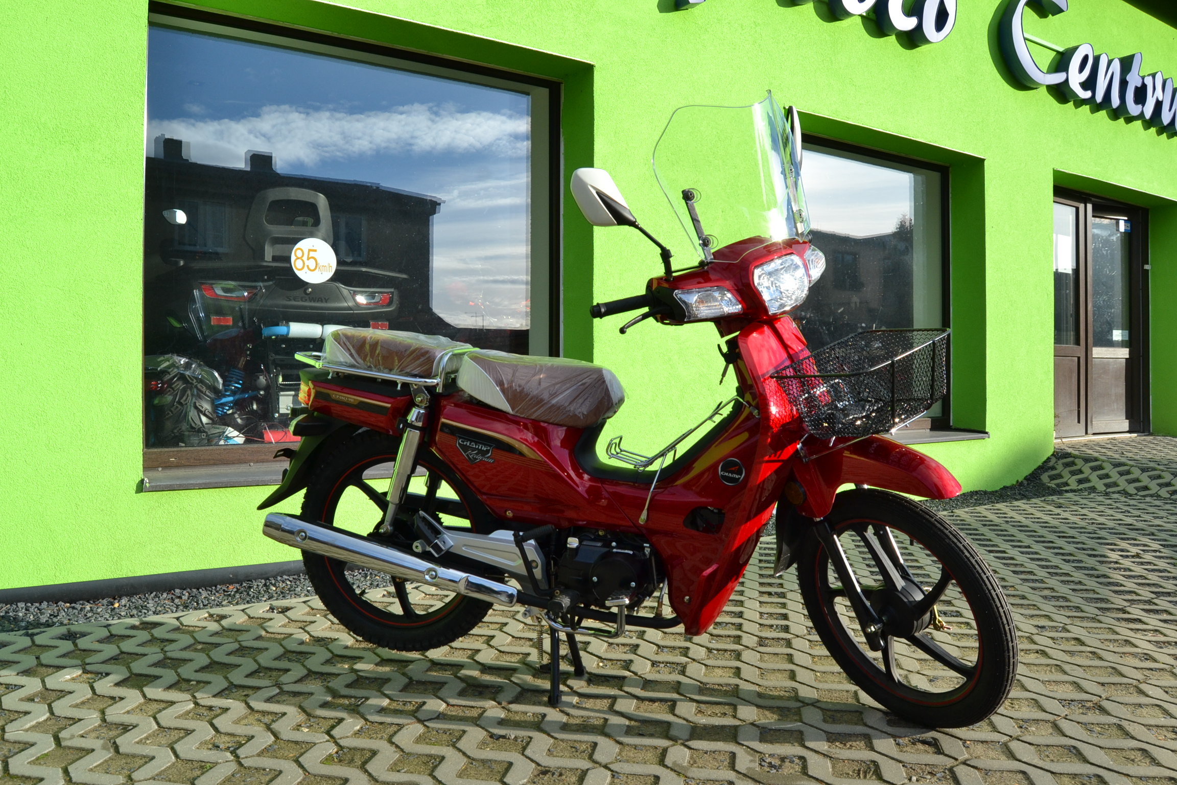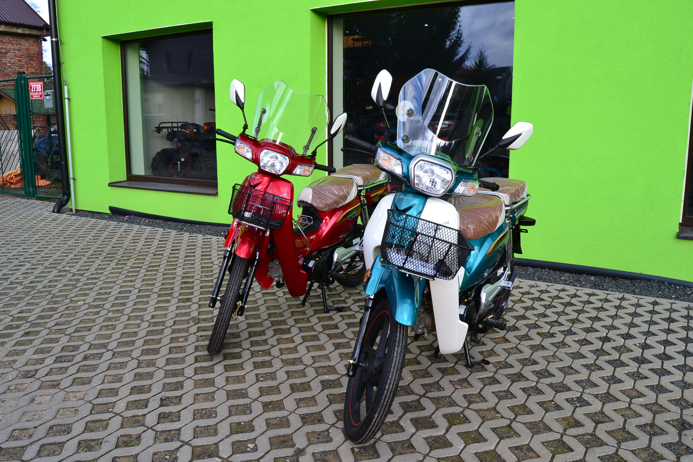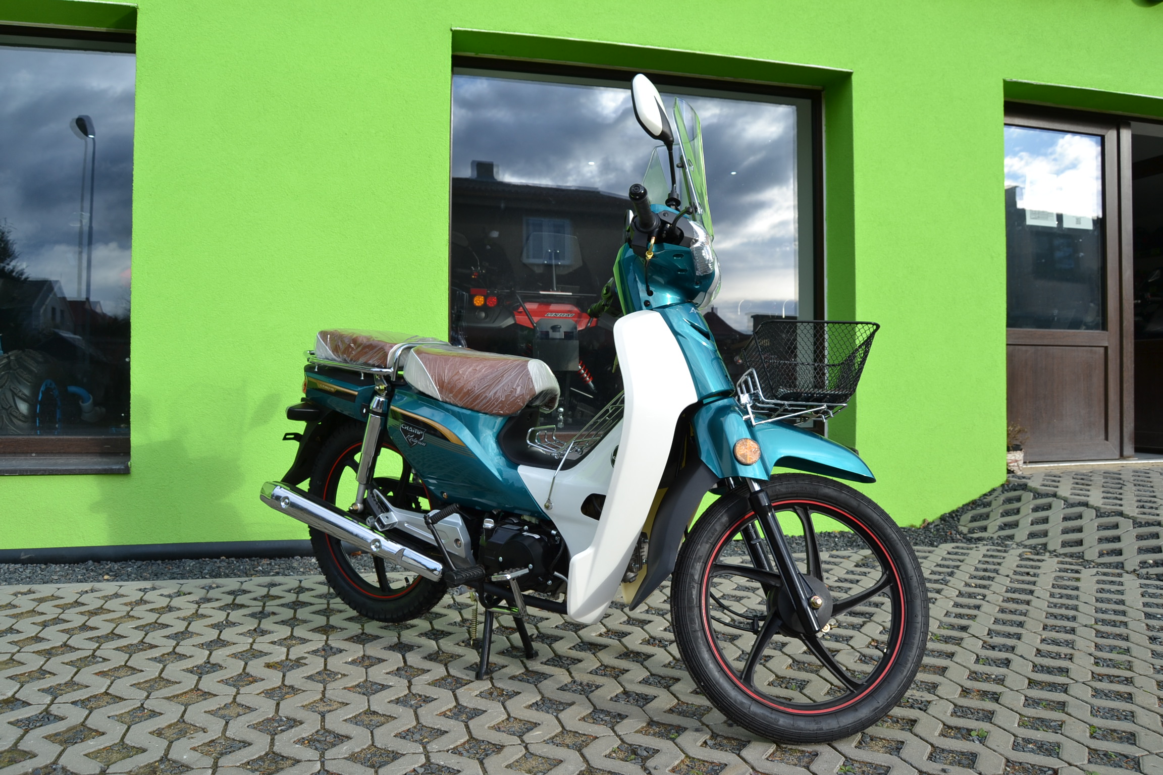 Novinka na kterou jste dlouho čekali...to je Champion Mopedo 50 EFI,který je možno řídit s papíry na malý motocykl od 15.let věku sk.AM nebo na auto sk.B . Dosluhující Babety přestávají plnit svojí funkci a právě nejen pro Vás jsme připravili tento nový model mopedu plnící nejnovětší emisní normu Euro 5.Champion Mopedo 50ccm je vybaven čtyřtaktním jednoválcovým vzduchem chlazeným motorem vycházející z koncepce Honda Monkey se čtyřstupňovou poloautomatickou převodovkou (řadíte jednoduše levou nohou bez nutnosti vymačkávání páčky spojky).Maximální rychlost dle TP je 45km/hod ,ale reálná je vyšší.Rybáři a chataři jistě ocení velká 17 ti palcová kola ,s kterými pak nebudou mít problém při  jízdy i po méně kvalitních komunikacích či lesních cestách.Velmi sympatická je také spotřeba tohoto mopedu ,která se pohybuje dle stylu jízdy kolem 2litrů na 100km.Pro nákupy do samoobsluhy využijete také určitě přední nosič s košíkem ,kde si odložíte pohodlně nákupní tašku.Při jízdě se spolujezdcem si pak jednoduše před jízdou přenastavíte tvrdost zadních tlumičů.Cena je platná ,při zakoupení v přepravní krabici.Montáž stroje zabere cca 3 hodiny.V případě ,že si budete přát moped složený připravený ihned k jízdě příplatek 2000,-kč