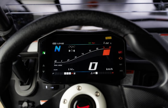 Moderní barevný TFT displej s automatickým přepínáním denního a nočního režimu přehledně zobrazuje rychlost jízdy, otáčky, stav paliva, zvolený pohon 2WD/4WD/LOCK, zařazený převod, teplotu chladicí kapaliny, celkové a denní ujeté kilometry a mnoho dalšího.