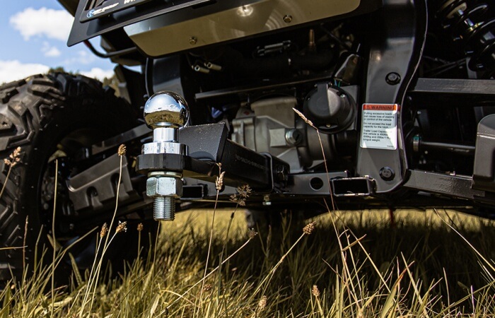 Součástí výbavy je homologované zadní tažné zařízení s klasickou koulí. Již v základu je čtyřkolka vybavena 12V zásuvkou pro připojení elektroinstalace přívěsu. Ideální řešení pro práci i přepravu nákladu.