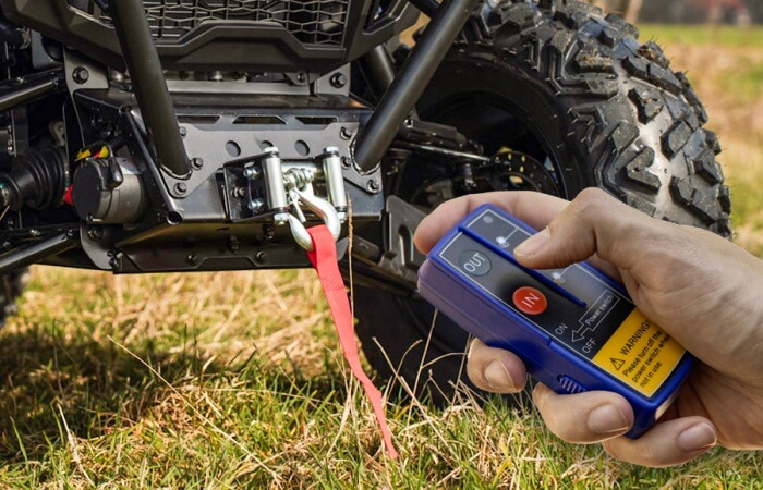 Výkonný naviják s tažnou silou 3000 lbs si poradí se zapadlým strojem i těžkým nákladem. Díky dálkovému ovládání ho můžete aktivovat přímo ze sedla nebo z bezpečné vzdálenosti, přesně podle situace.