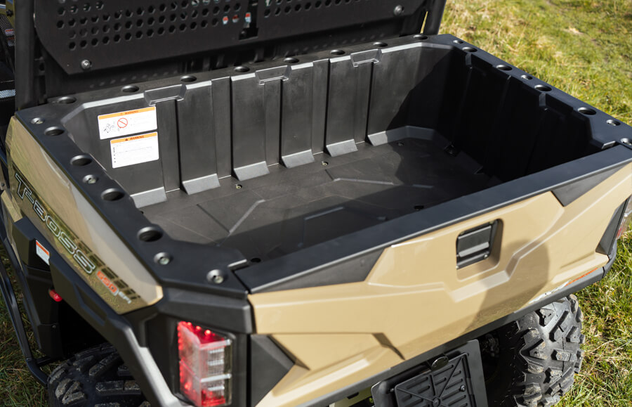 Linhai 650 T-Boss EPS s homologací Euro 5+ je ideální pomocník pro práce v zemědělství, lesnictví, ale také na stavbách, v parcích, zahradnictvích, sportovních areálech, při zásobování horských hotelů apod. Díky posilovači EPS je řízení příjemné a snadné. Silný a úsporný motor přesvědčuje vysokou tažnou silou, kterou oceníte při různých pracovních činnostech nebo tažení a tlačení různých přípojných doplňkových zařízení. Bezpečnost celé posádky zvyšují zesílené poloviční dveře.