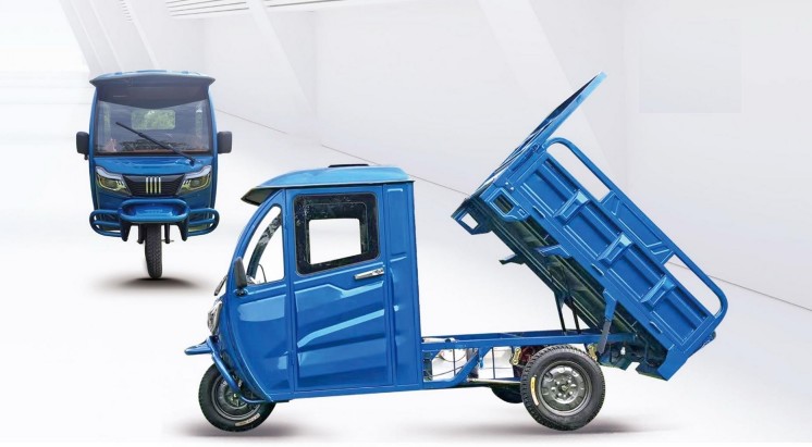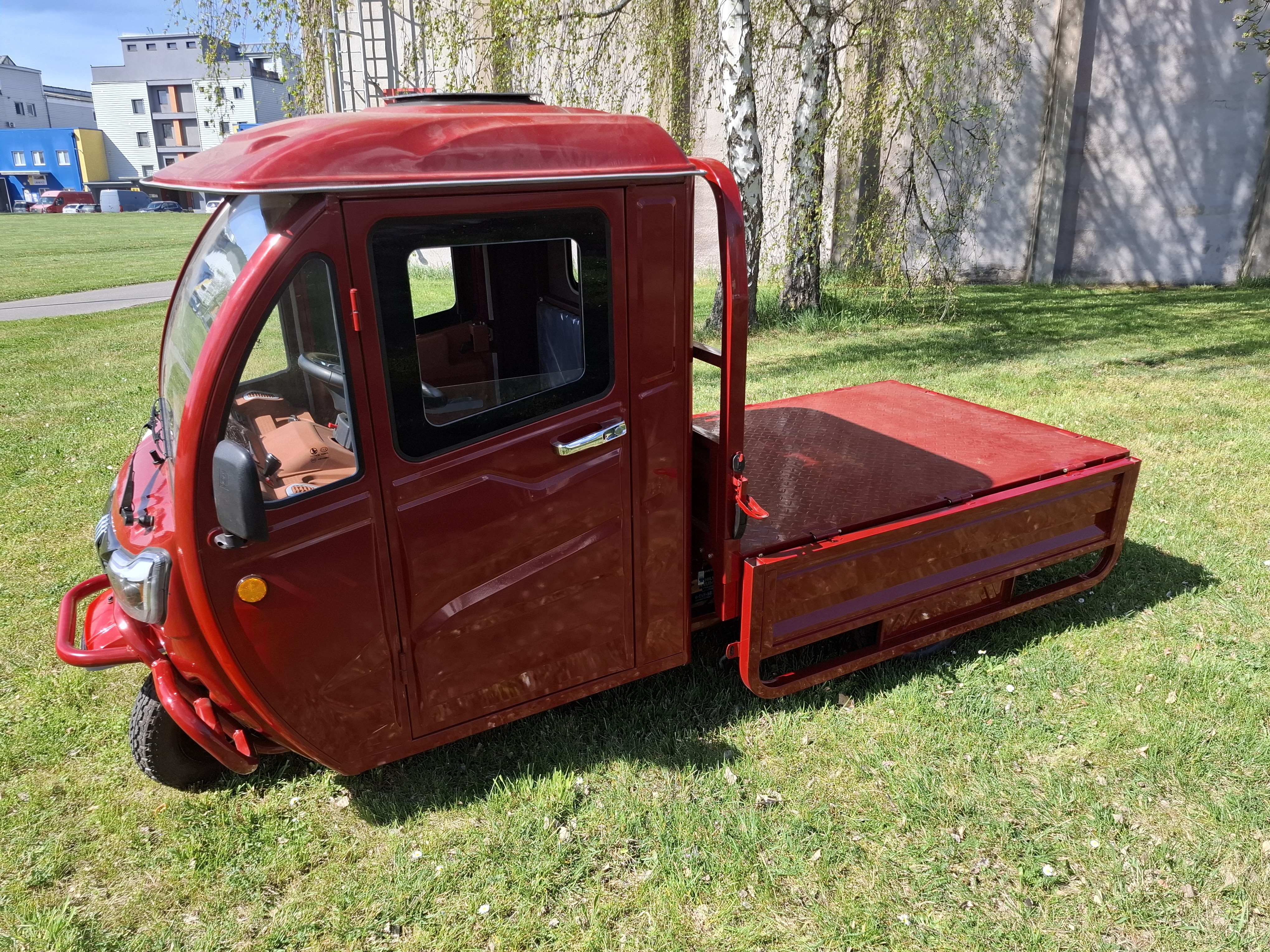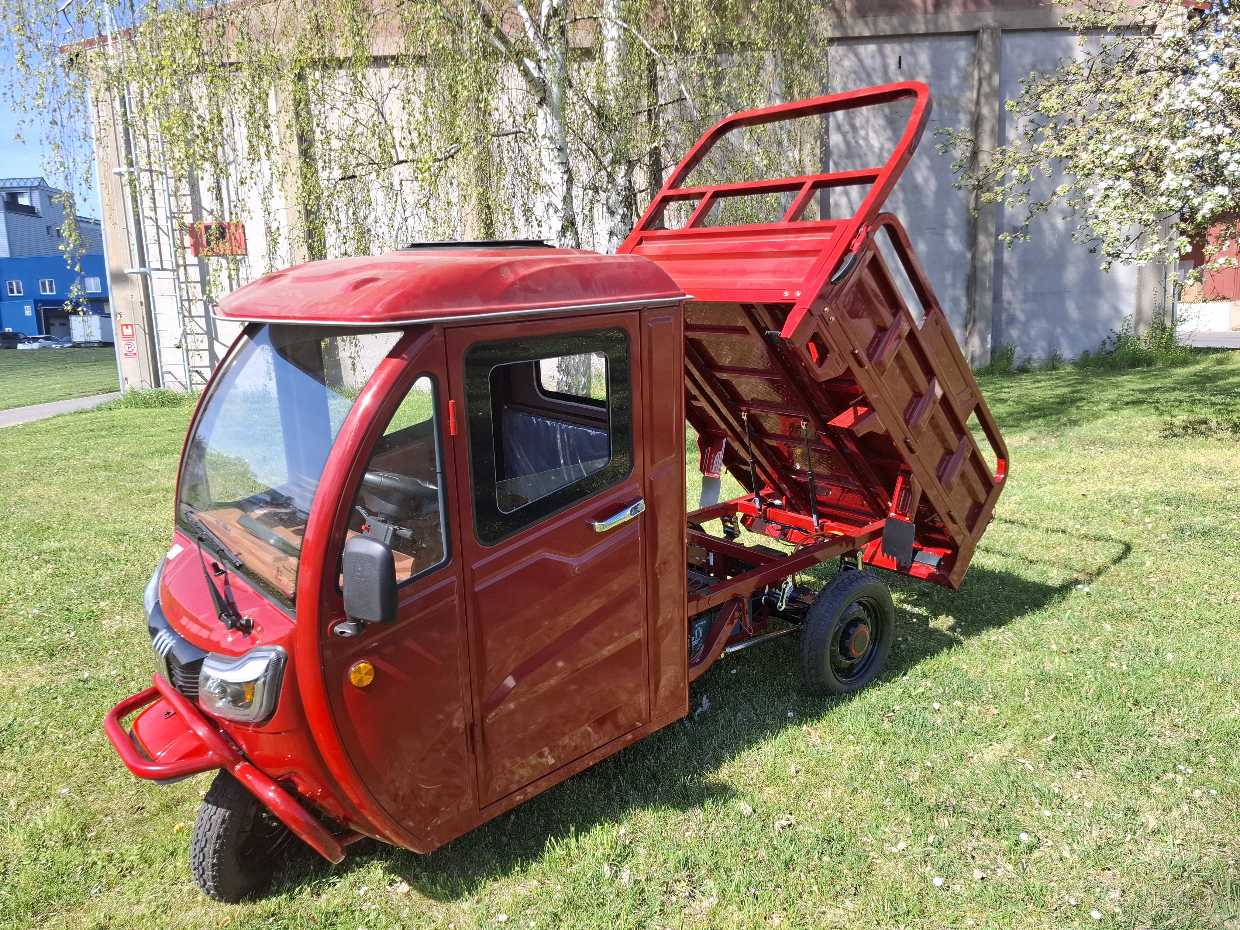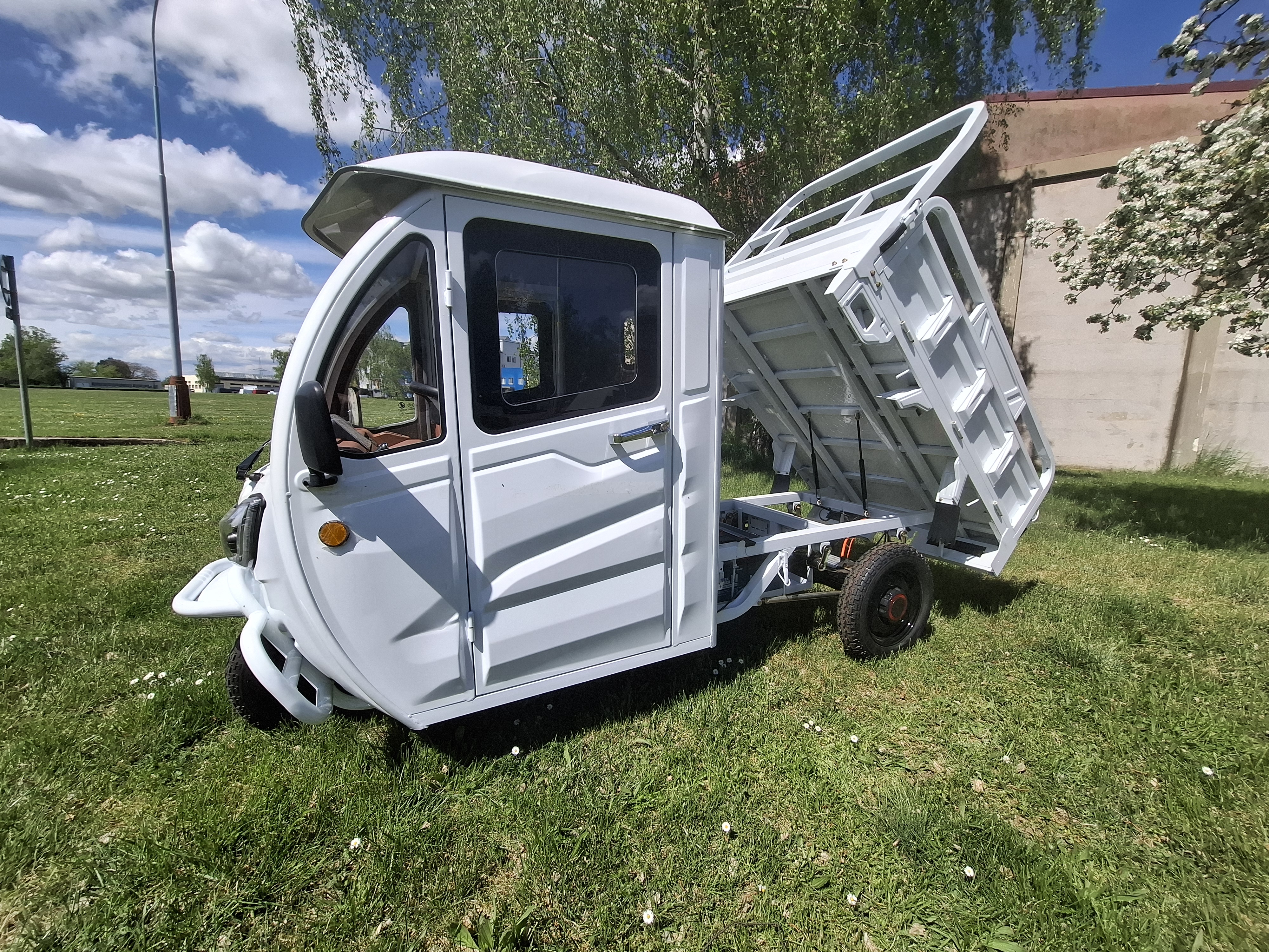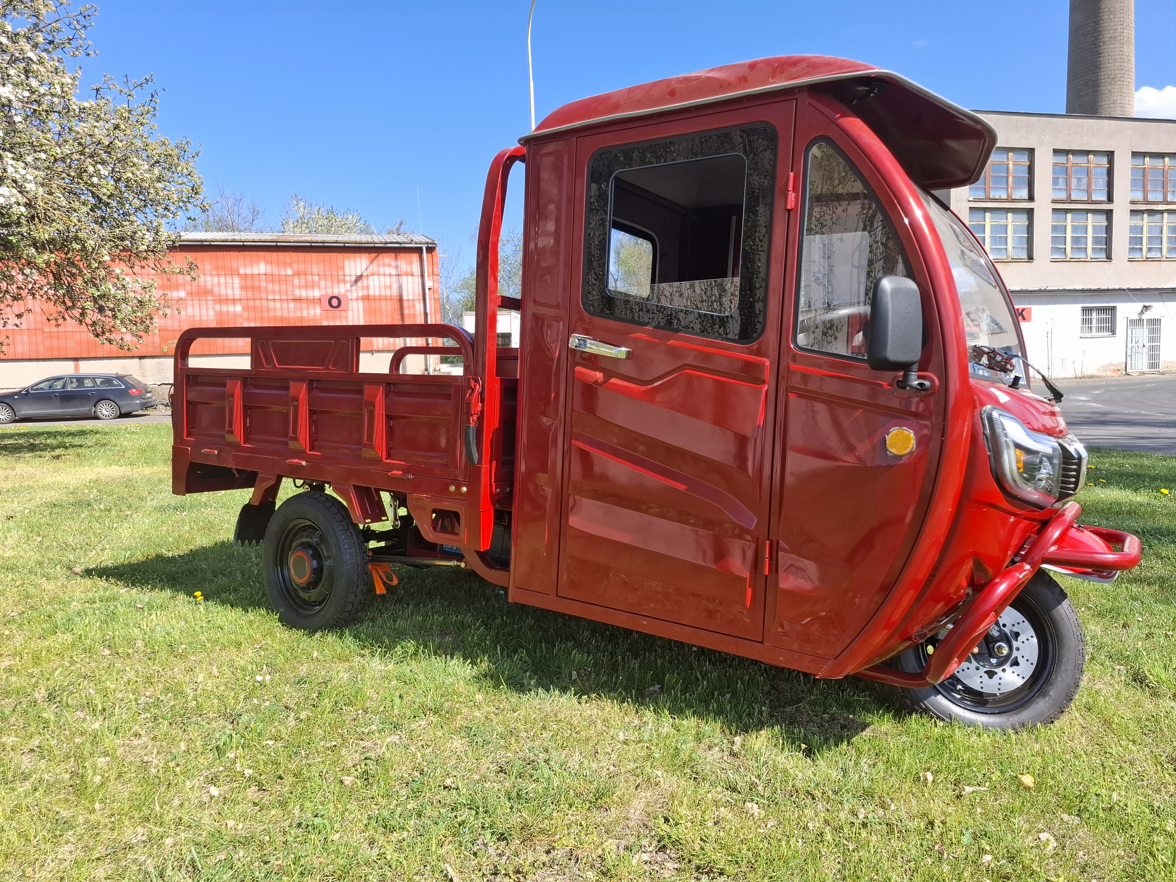 Pracovní tříkolka T-09 s vyhřívanou kabinou, volantem a sklopnou korbou (výklopné "sajtny")