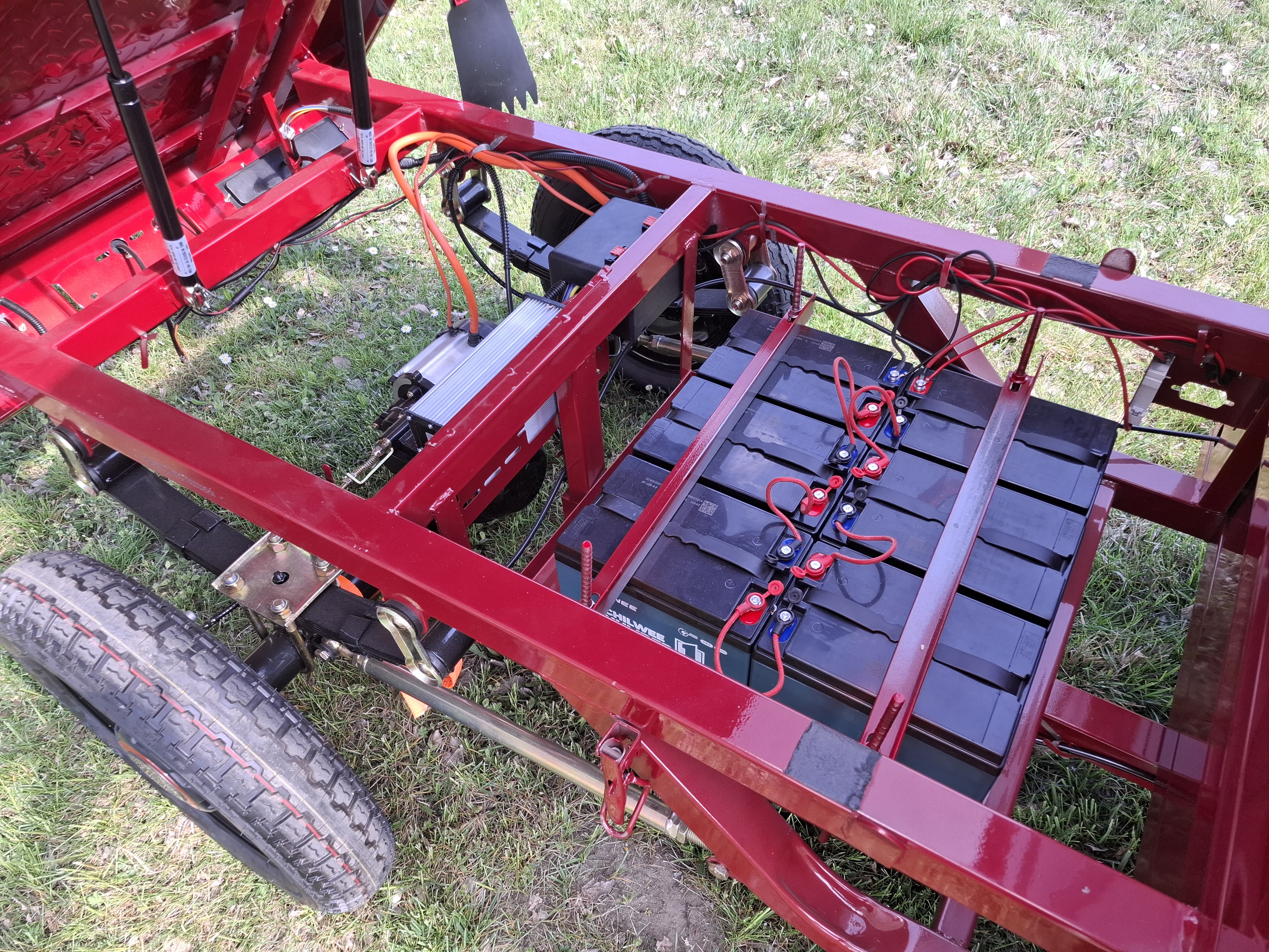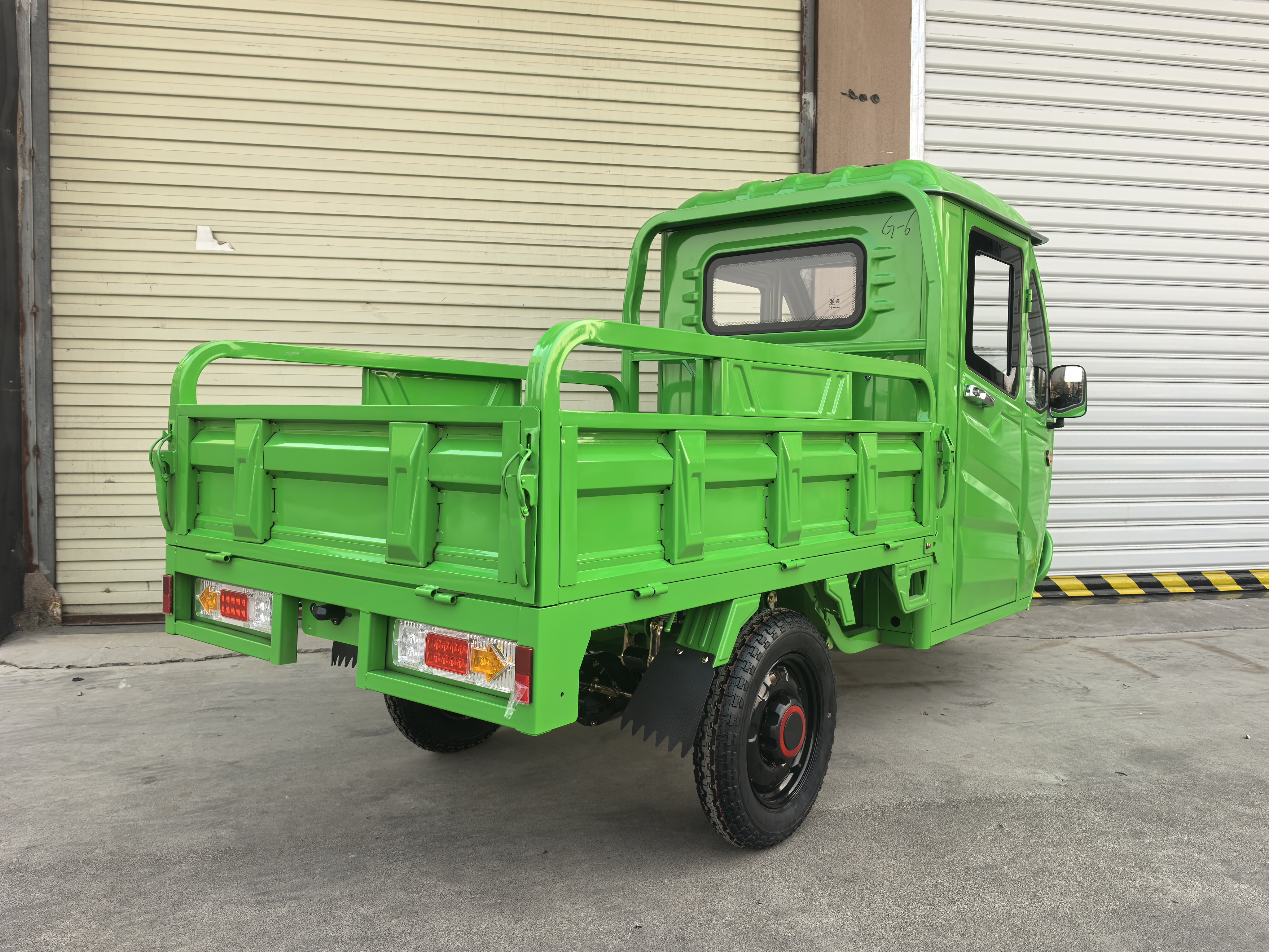 Tato tříkolka je vybavena zadním diferenciálem a navíc redukcí do síly pro případ naložení těžšího nákladu na korbu.