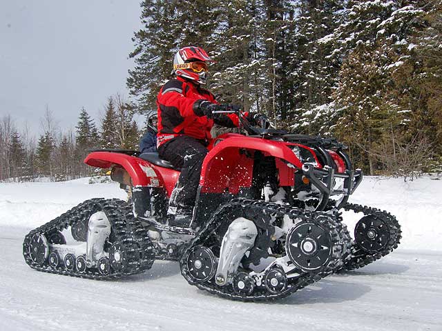 Pásový systém TJD XGEN III, pro většinu užitkových čtyřkolek, patentované odpružení STS 4, výborná ovladatelnost, přesné držení stopy ve sněhu, lehká konstrukce, včetně adaptérů, celoroční použití, pásy lze používat i na nezpevněných površích, homologované