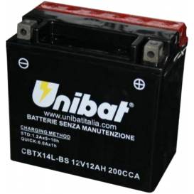 Motobaterie 12V, CBTX14L-BS, 12Ah, 200A, bezúdržbová MF AGM 150x87x145, UNIBAT -