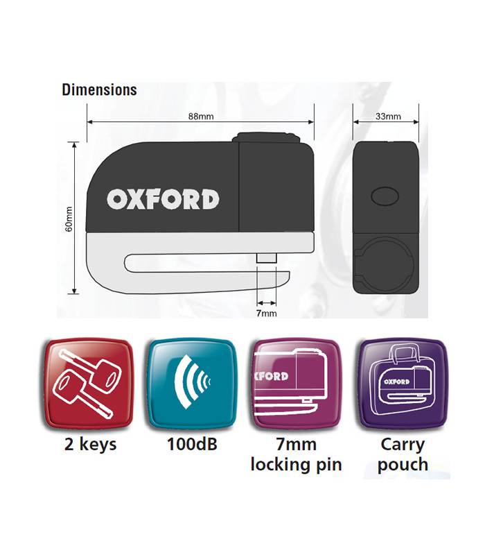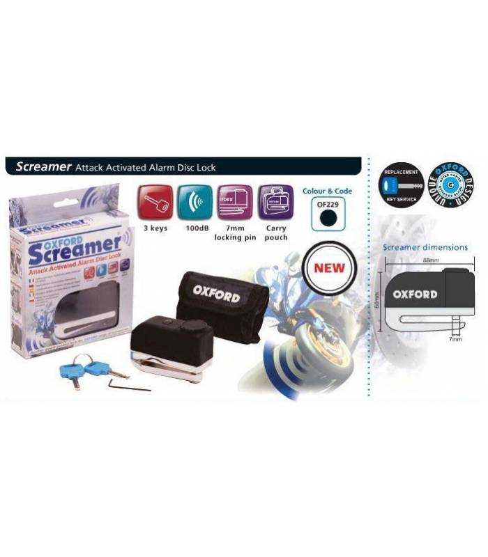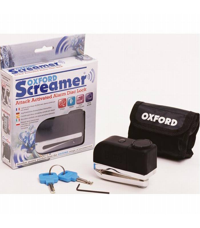 Zámek kotoučové brzdy Screamer, OXFORD - Anglie (integrovaný alarm, chromový)
