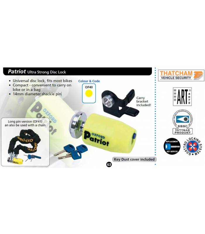 Zámek kotoučové brzdy Patriot, OXFORD - Anglie (průměr čepu 14mm, žlutý)
