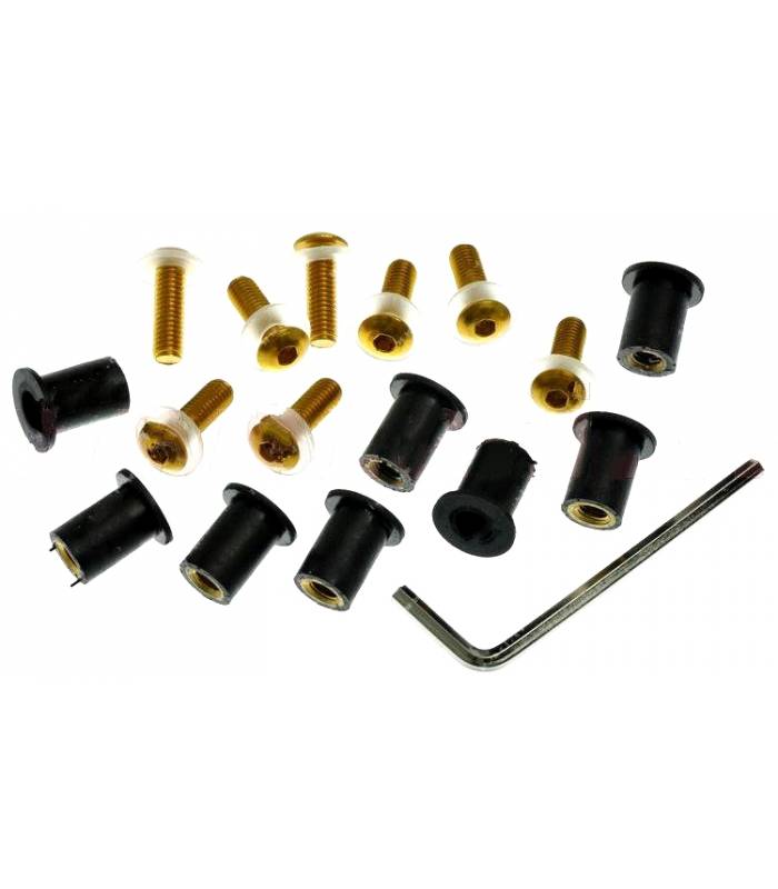 Imbusy pro plexi vč. matic M5 v pryžovém pouzdře a podložek, OXFORD - Anglie (zl
