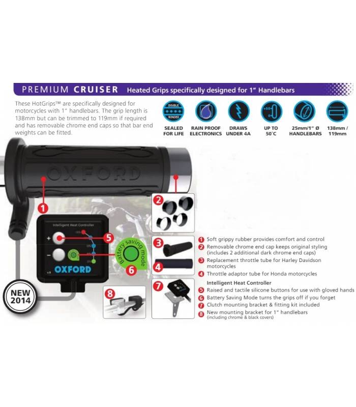 Gripy vyhřívané Hotgrips Premium Cruiser, OXFORD - Anglie (vnitřní průměr 25,4mm