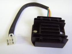 Usměrňovač / regulátor má za úkol změnit střídavé napětí alternátoru na 12 V stejnosměné a udržet napětí v určitém rozmezí.Zapojeny čtyři vodiče. Porovnejte s obrázkem.