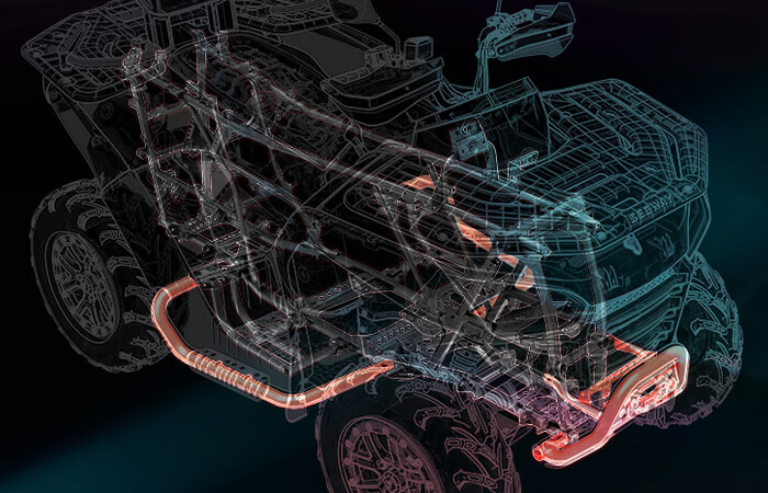 Elektrický posilovač řízení, elektrický naviják, sedadlo s opěrkou zad, tažné zařízení, kompozitní nosiče vpředu i vzadu, digitální multifunkční displej, Full-LED osvětlení, přední ochranný rám, zadní ochranný rám, boční ochranné rámy, 14" hliníkové disky, nastavitelné pérování s progresivně vinutými pružinami, ochranné kryty rukojetí