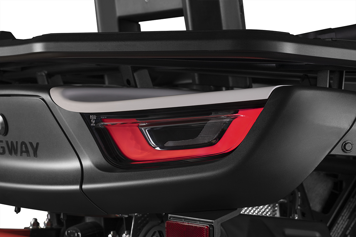 Elektrický posilovač řízení, elektrický naviják, sedadlo s opěrkou zad, tažné zařízení, kompozitní nosiče vpředu i vzadu, digitální multifunkční displej, Full-LED osvětlení, přední ochranný rám, zadní ochranný rám, boční ochranné rámy, 14" hliníkové disky, nastavitelné pérování s progresivně vinutými pružinami, ochranné kryty rukojetí