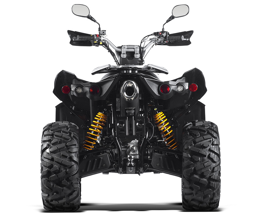 Dvoumístné prodloužené provedení nejoblíbenější užitkově-rekreační čtyřkolky střední třídy v ČR. S ostrým dynamickým designem, moderní technikou s atraktivními LED světly vpředu i vzadu a s hliníkovými koly s ostře lomenými paprsky působí opravdu dospěle a atraktivně. Dvě pohodlné samostatné sedačky poskytují jezdci i řidiči dostatek prostoru pro pohodlnou jízdu. Prodloužený podvozek zlepšuje stoupavost a stabilitu při zachování skvělé obratnosti a příjemné ovladatelnosti krátkého modelu. Robustnost, vysoká spolehlivost a vynikající poměr ceny, kvality a užitné hodnoty jsou další z mnoha předností této bohatě vybavené čtyřkolky.Spolehlivý motor.Spolehlivý moderní kapalinou chlazený čtyřventilový jednoválec SOHC s velkou tažnou sílou a dostatkem výkonu pro každou situaci. Vyvinutý a vyráběný přímo továrnou TGB je motor vybaven spolehlivým elektronickým vstřikováním paliva, které nezávisle na teplotě a nadmořské výšce zaručuje snadné startování, čisté spalování a nízkou spotřebu palivaObrat. Spolehlivá automatická ´heavy-duty´ převodovka s polohami L/H/N/R (redukce do síly / dopředná rychlost / neutrál / zpátečka) a minimálními nároky na údržbu je navíc vybavená účinnou motorovou brzdou.Obratný podvozek.Špičkovou průchodnost terénem zajišťuje moderní plně nezávislé zavěšení všech kol iRS, široký rozchod, velká světlá výška a elektricky připojitelný pohon předních kol 2x4 / 4x4 pouhým stisknutím tlačítka na řídítkách. V nejtěžším terénu navíc oceníte rychle pracující elektrickou uzávěrku předního diferenciálu, která zajišťuje maximální trakci kol. Komfortně nastavený prodloužený podvozek je odpérován vysoce kvalitními hydraulickými jednotkami s progresivně vinutými pružinami s nastavitelným předpětím.Brzdový systém.Brzdy jsou stejně důležité jako výkon motoru. Výkonný tříkotoučový hydraulický brzdový systém s vrtanými kotouči a pancéřovanými brzdovými hadičkami vám dá důvěru při posunování vašich jezdeckých schopností. Hlavní nožní brzda brzdí současně všechna kola v poměru 60/40, pravou páčkou můžete navíc ovládat pouze přední brzdy, levou páčkou zadní. Parkovací brzda je ovládána samostatně.LED osvětlení.Atraktivní LED světla pro denní svícení zaujmou na první pohled. Společně s dvojitými zadními LED světly a LED blikači je TGB Blade ještě dospělejší a ještě přitažlivější. A když zajde slunce, výkonné projektorové světlomety vám vždy spolehlivě najdou cestu domů.Multifunkční LCD displej.