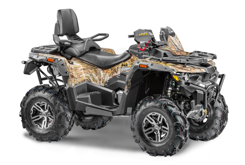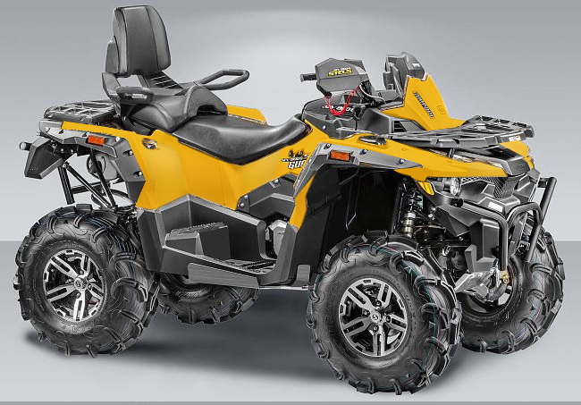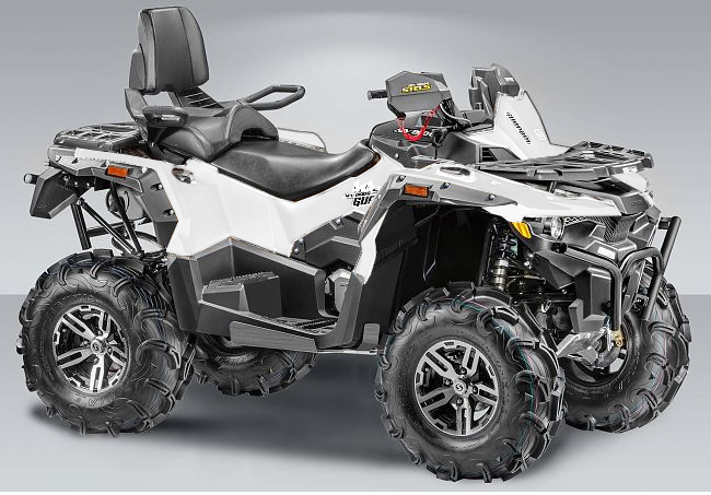 Ruská odolnost, vynikající zpracování a použité materiály. Neskutečně pohodlná a výkonná čtyřkolka. Duální LED světlomety, značkové pneumatiky Maxxis Zilla 27", multifunkční tachometr Koso, přední i zadní nosič, kryty rukou, trhačka, LED blikny i zadní lampa, odnímatelné tažné zařízení, silný naviják 4500LBS, rozšířené plastové lemy (vyměnitelné), robustní přední a zadní ochranný rám v černé, nebo žluté barvě. Pro spolujezdce je zde připraveno plnohodnotné křeslo (odnímací). V základní výbavě již tak nabušené čtyřkolky nechybí dokonce ani plnohodnotný duralový kryt celého podvozku.